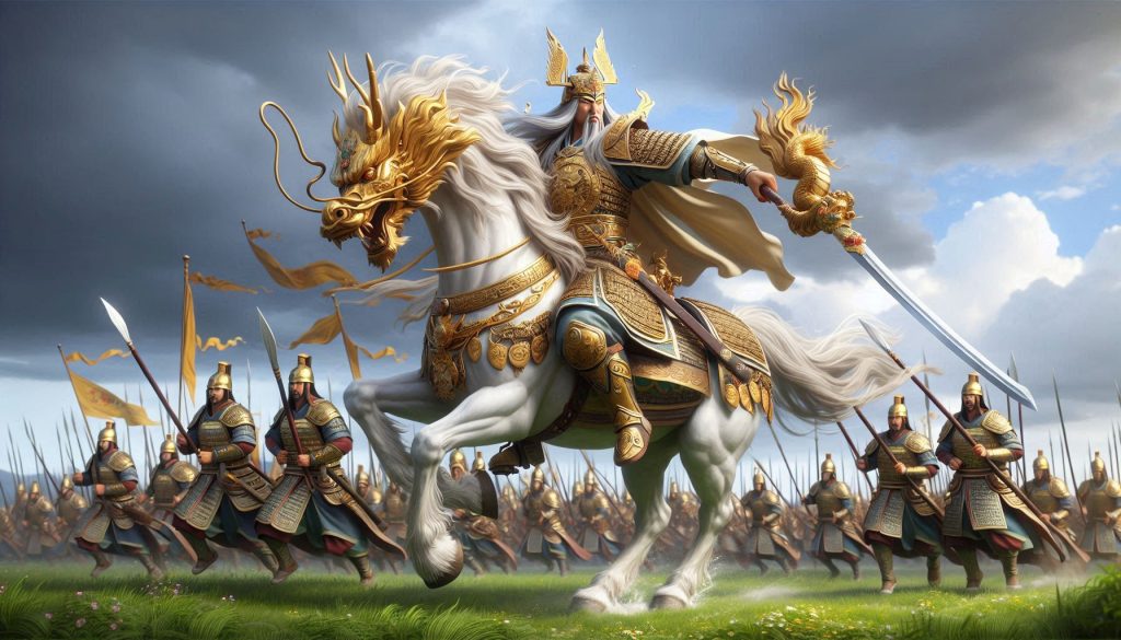 劉備(161年 – 223年)は、蜀漢の創始者であり、三国志の中でも最も人望のある指導者の一人とされています。彼は、義兄弟の関羽と張飛とともに、仁義と忠誠を重んじる人物として描かれています。劉備は、漢王朝の末裔を自称し、その血統をもって正統性を主張しました。